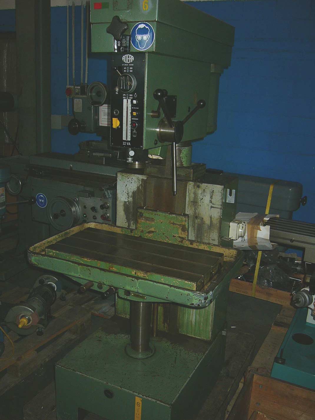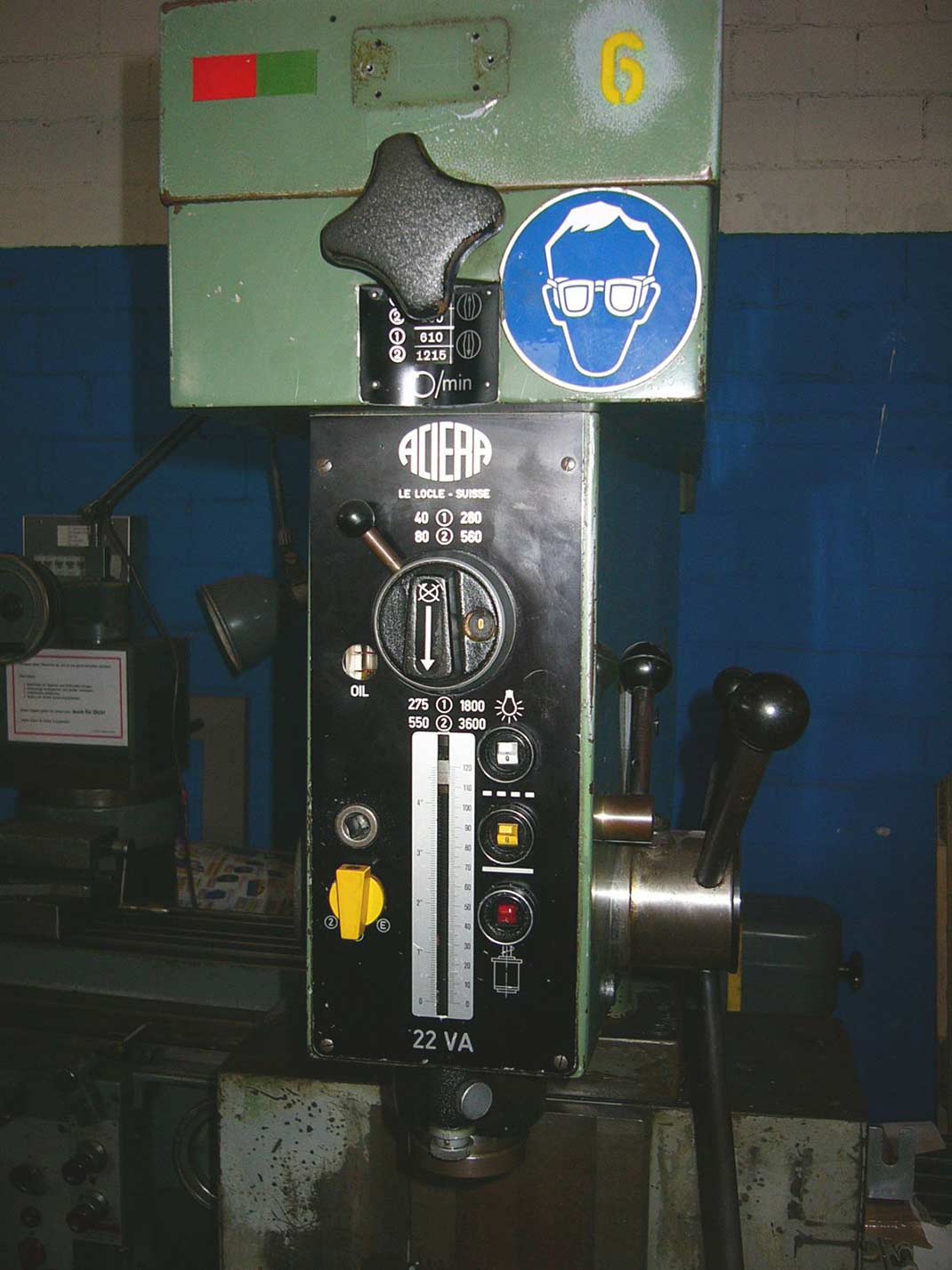 - Tisch und Bohrkopf-Höhenverstellung über Handkurbel