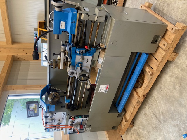 - Gesicherter Späneschutz und Not-/Ausschalter, Aufspannscheibe 300mm, Planscheibe 200mm, 4-fach Stahlhalter, Steh- und Mitlauflünette, 2 feste Spitzen MK3, Reduzierhülse MK5-MK3, Gewindeschneideuhr, Wechselrädersatz