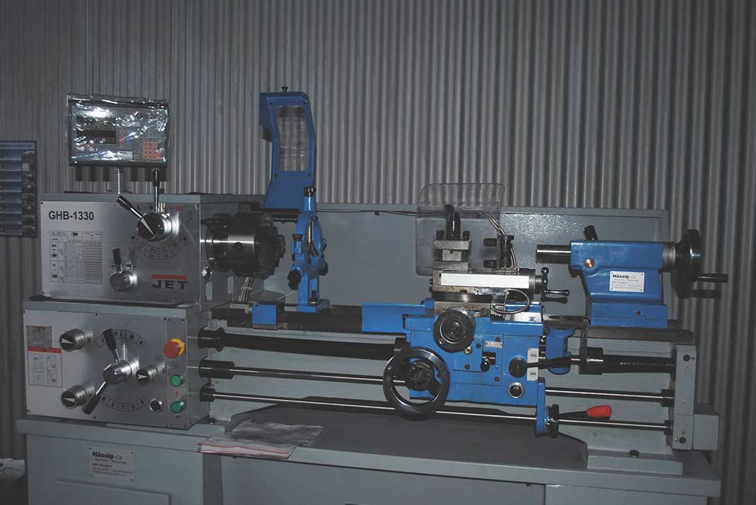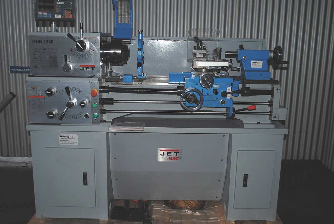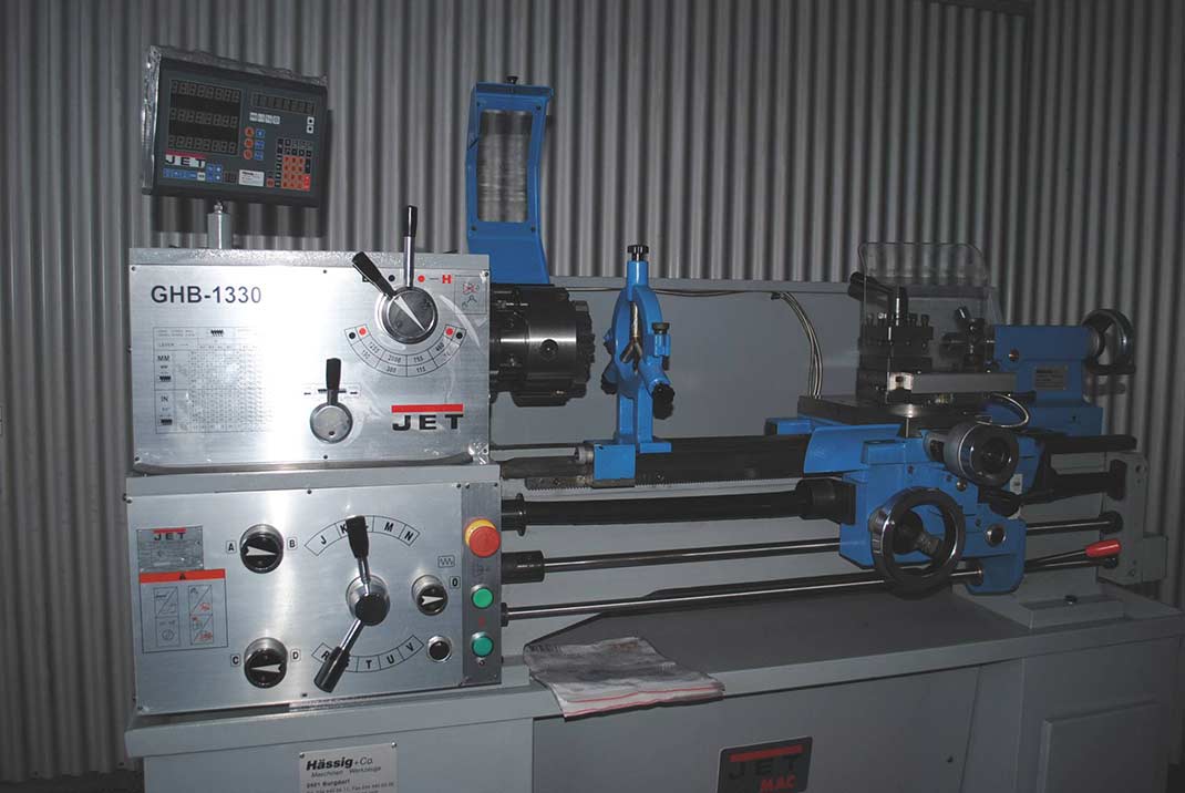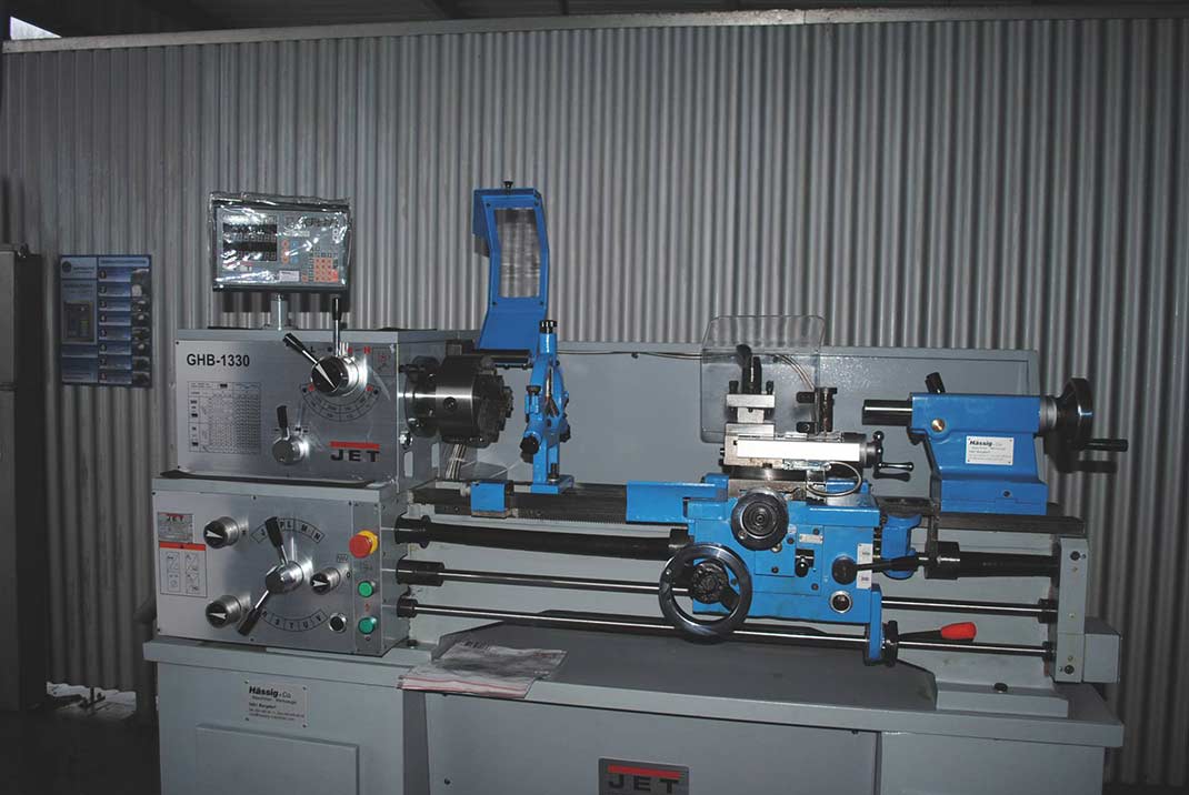 - Gesicherter Späneschutz und Not-/Ausschalter, Aufspannscheibe 300mm, 4-fach Stahlhalter, Steh- und Mitlauflünette, 2 feste Spitzen MK3, Reduzierhülse MK5-MK3, Gewindeschneideuhr, Wechselrädersatz