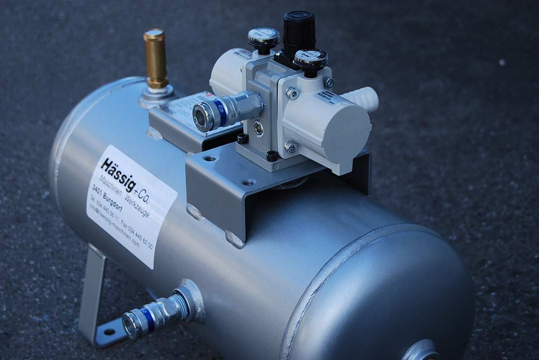 • komplett mit Druckbehälter 10L / Schalldämpfer / Manometer und Kupplungen