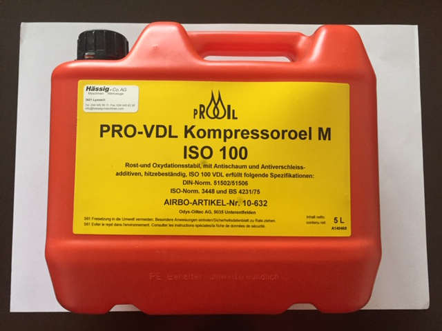 01 Stk. Gebinde 5 Liter 10-632 Spezialöl für Kolbenkompressoren Netto CHF 118.90 zuzüglich MWST.