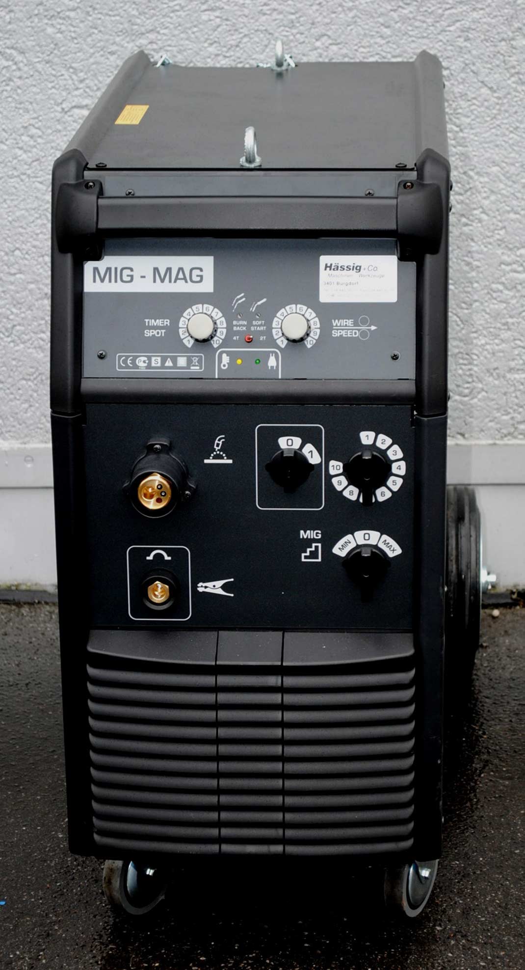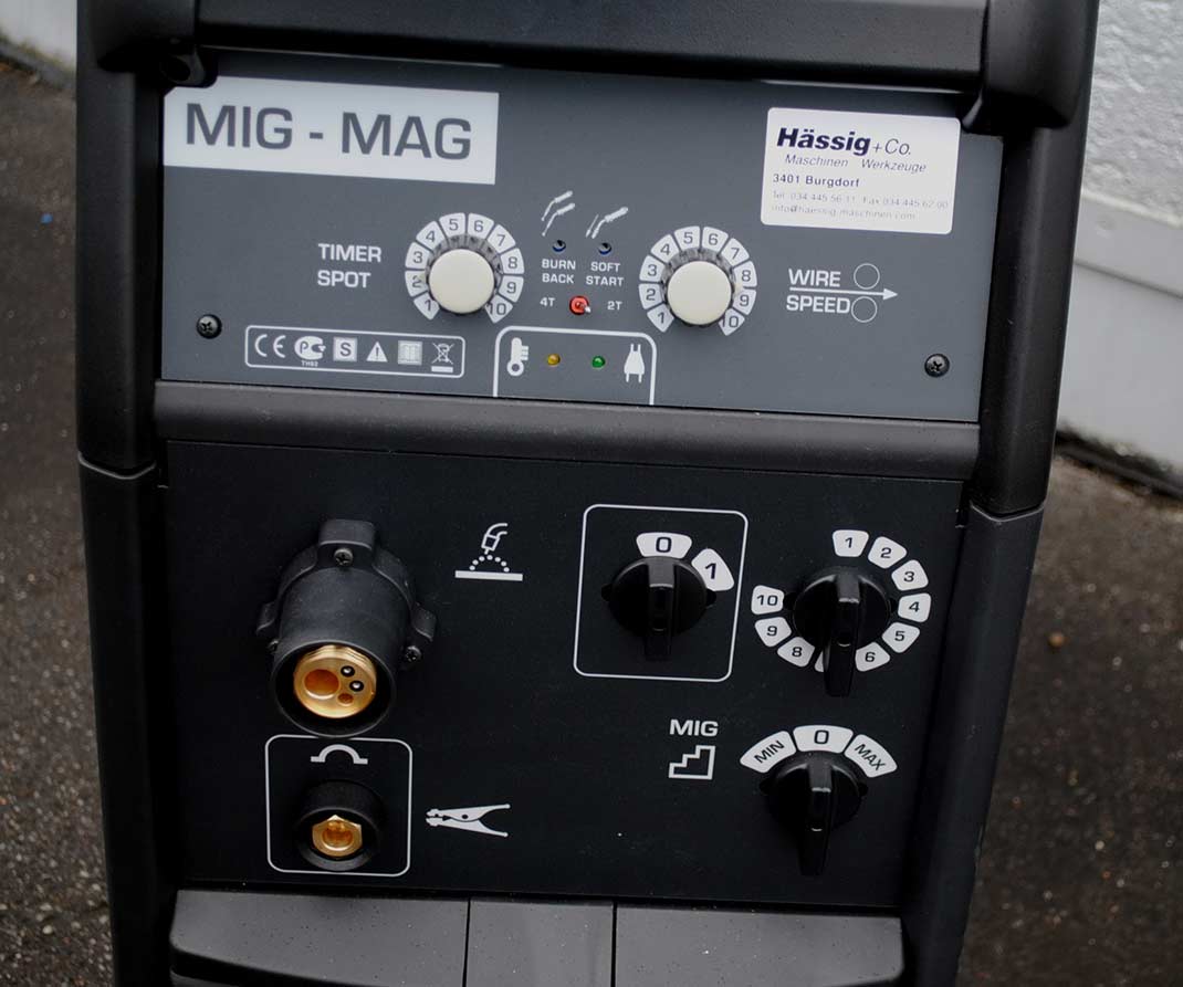 - Zubehör: Schweisskabel L - 5m, Brenner L - 3m, Druckreduzierventil, Zubehör-Box, Adapter für 5kg Spulen