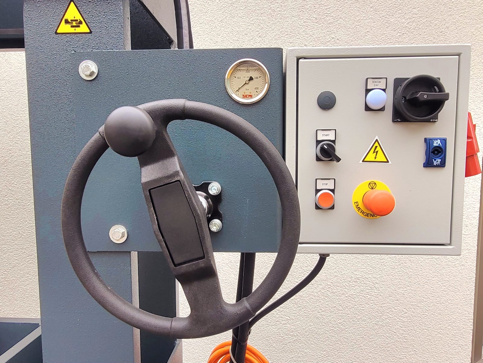 Die hydraulische Werkstattpresse mit servomechanischem Handrad ist auch in der Ausführung mit Querfahrzylinder erhältlich, der mit Hilfe eines Handrades eine Querbewegung des Hauptzylinders ermöglicht. Diese Lösung ermöglicht es Ihnen daher, immer in der Mitte der Zylinderachse zu arbeiten und so Prozesse zu vermeiden, die die hydraulische Presse beschädigen könnten.