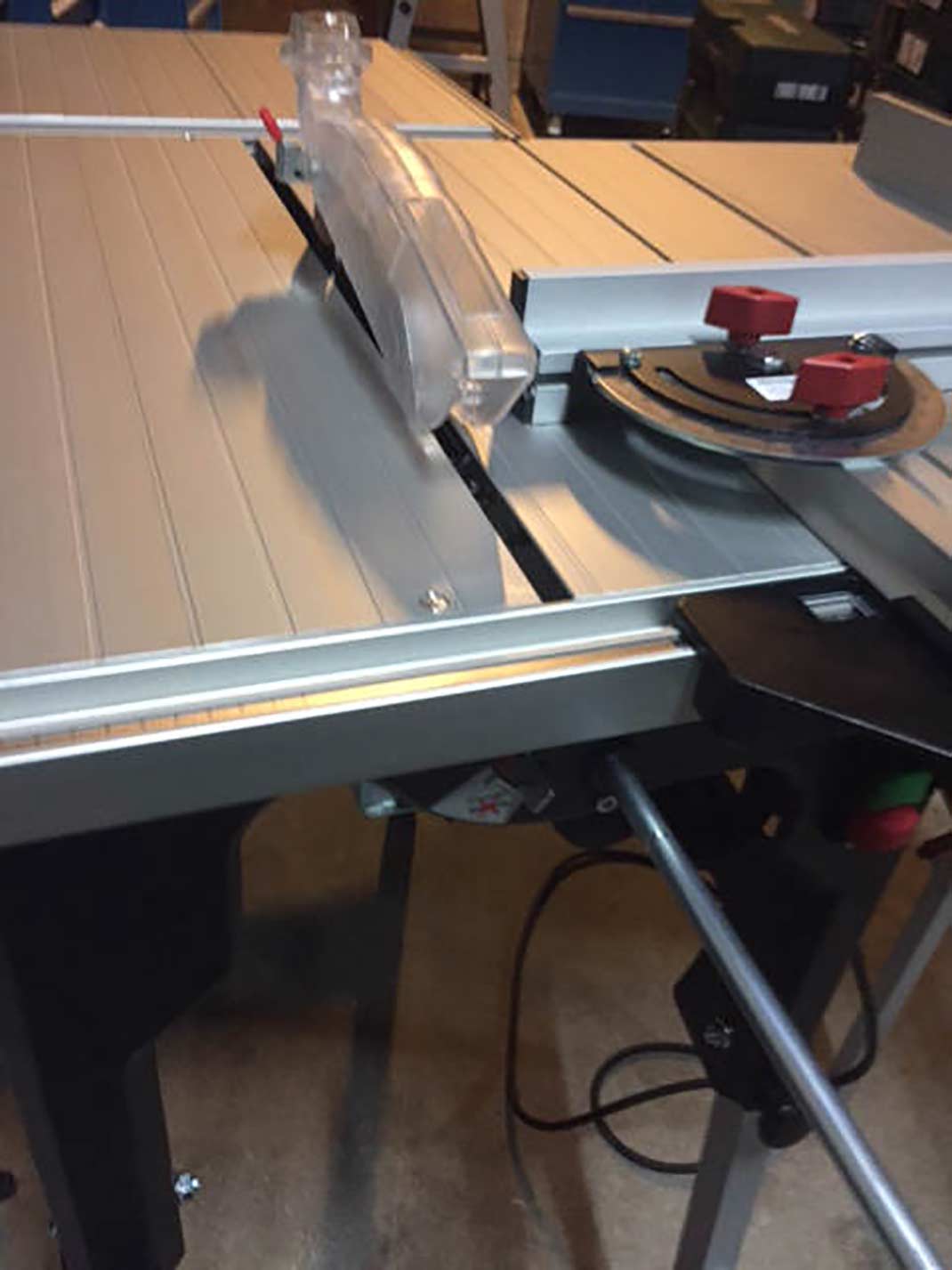 - Schiebeschlitten, Tischverbreiterung und Tischverlängerung zum präzisen Sägen von großen Werkstücken als Zubehör möglich.